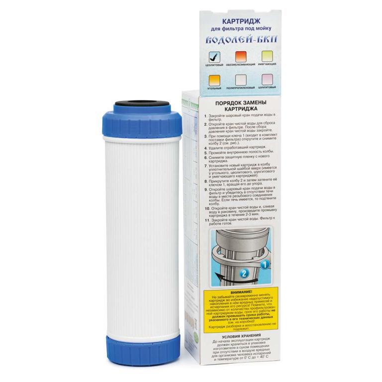 Картридж цеолитовый предназначен для доочистки холодной водопроводной питьевой воды стандартного качества с незначительным превышением в ней тяжелых металлов (железа, марганца), радиоактивных элементов, нефтепродуктов, фенола, аммонийного азота, хлорорганических соединений. Понижает содержание солей жесткости, предотвращая образование твердого осадка в нагревательных приборах, обогащает воду катионами щелочных металлов, насыщает её макро и микроэлементами: калием, натрием и кремнием в легко усвояемой форме, обеспечивает щелочной показатель воды (рН 7,6 – 8,4). Задерживает мелкодисперсные частицы.